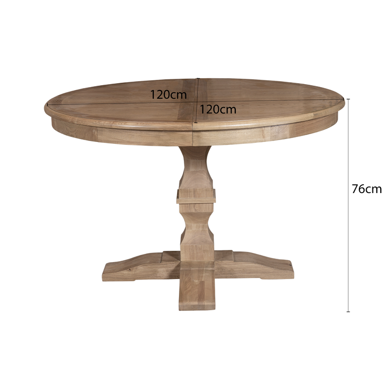 French Provincial Farmhouse Oak Extendable Round Pedestal Dining Table