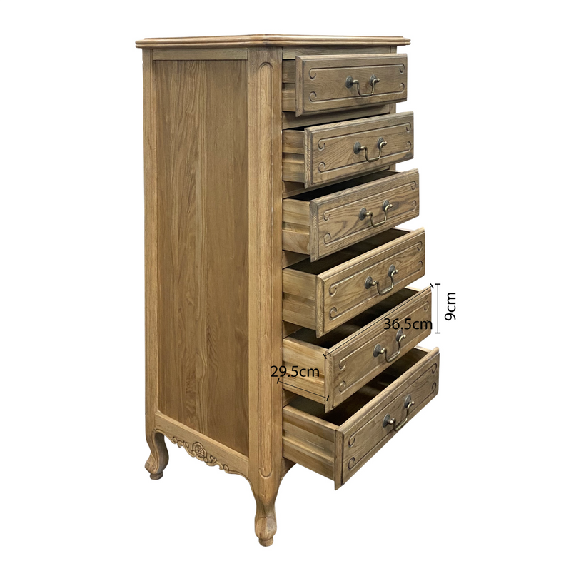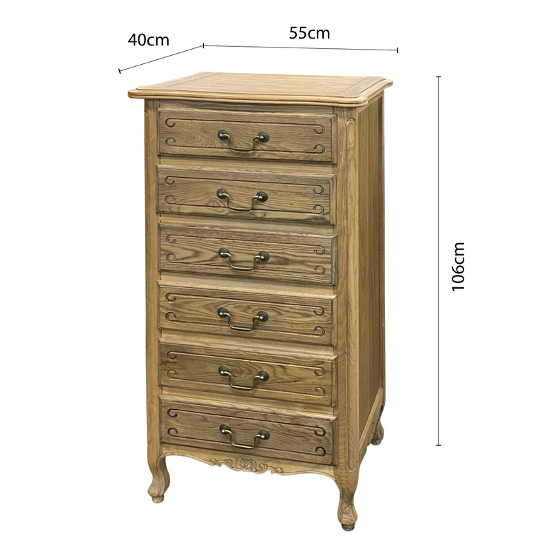 French Provincial Louis 6 Drawer Tallboy Cabinet