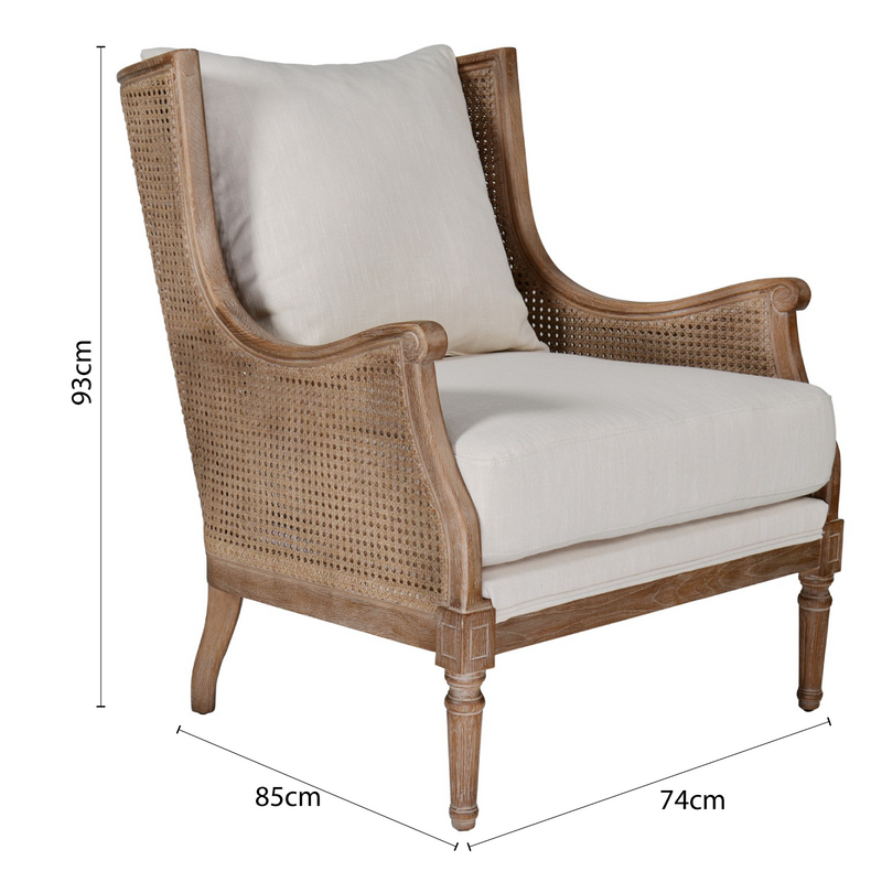 French Provincial Louis Havana Linen and Rattan Wingback Armchair