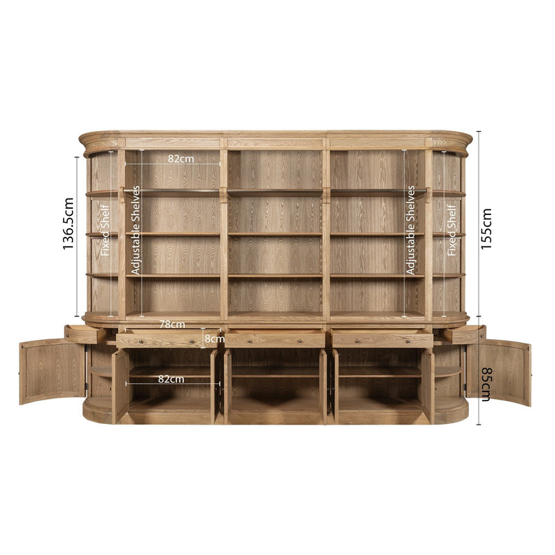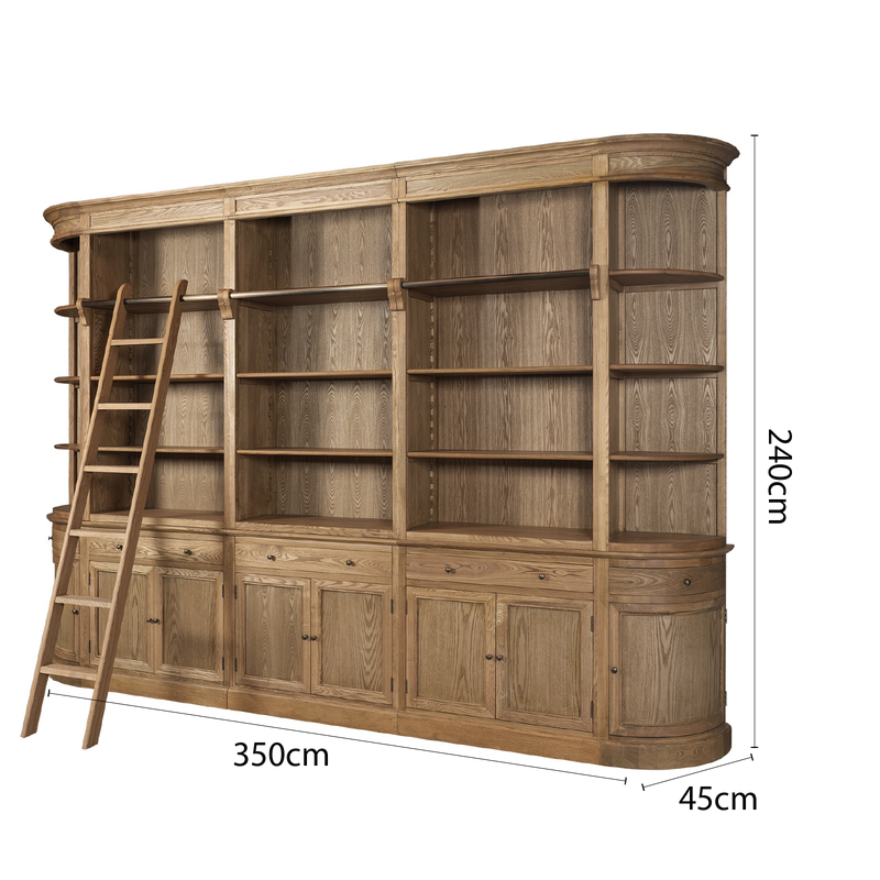 Early Bird Pre-order: Extra $1,000 OFF - French Provincial Natural Buffet and Hutch Bookcase Sideboard Cabinet with Ladder