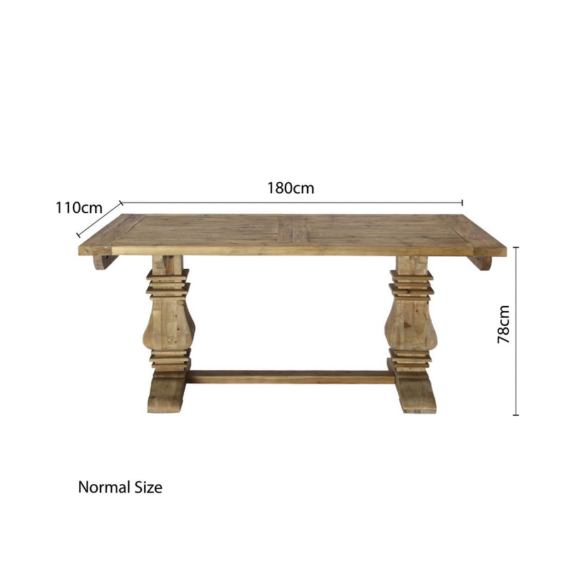 **Photo is taken from the actual product, however please expect variations in reclaimed wood, which affects the colours and finish of each piece of furniture. This table is manufactured with old fir wood. The reclaimed fir wood is salvaged from the old building and palettes,knots, holes, cracks, splitting, roughness and unevenness are all inherent imperfections that add to the character of the item and will vary in each table. The reclaimed fir wood is sanded, wire brushed and sand-blasted for a unique finish which helps to outstand the rustic charm of this dining table. **