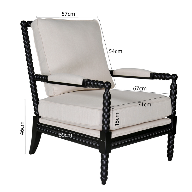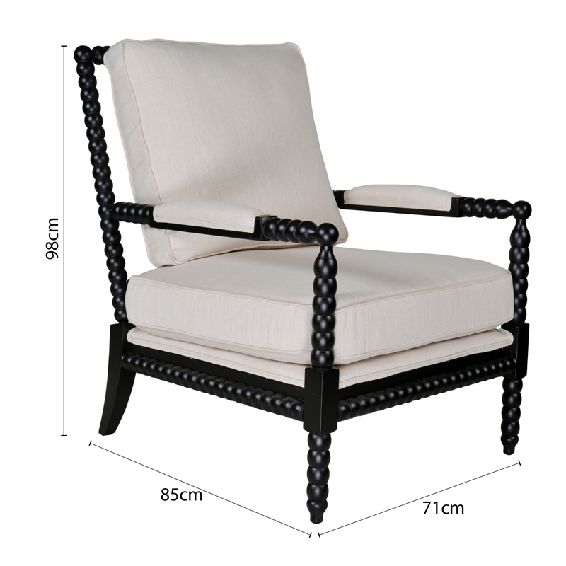 Hamptons Coastal Bobbin Linen and Timber Armchair