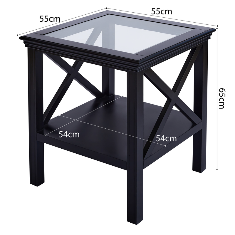 The Hamptons Coastal Glass Cross Side Table is a stylish and practical addition to any living space. Designed with clean lines and a classic coastal aesthetic, this side table features a sturdy black frame with elegant cross detailing on each side, adding a refined touch to its overall look.
