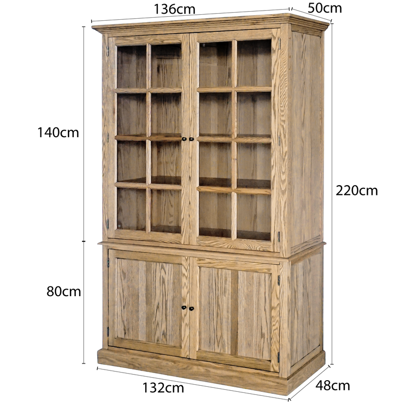 Hamptons Coastal Hutch Glass Display Cabinet Bookcase and Buffet Cupboard