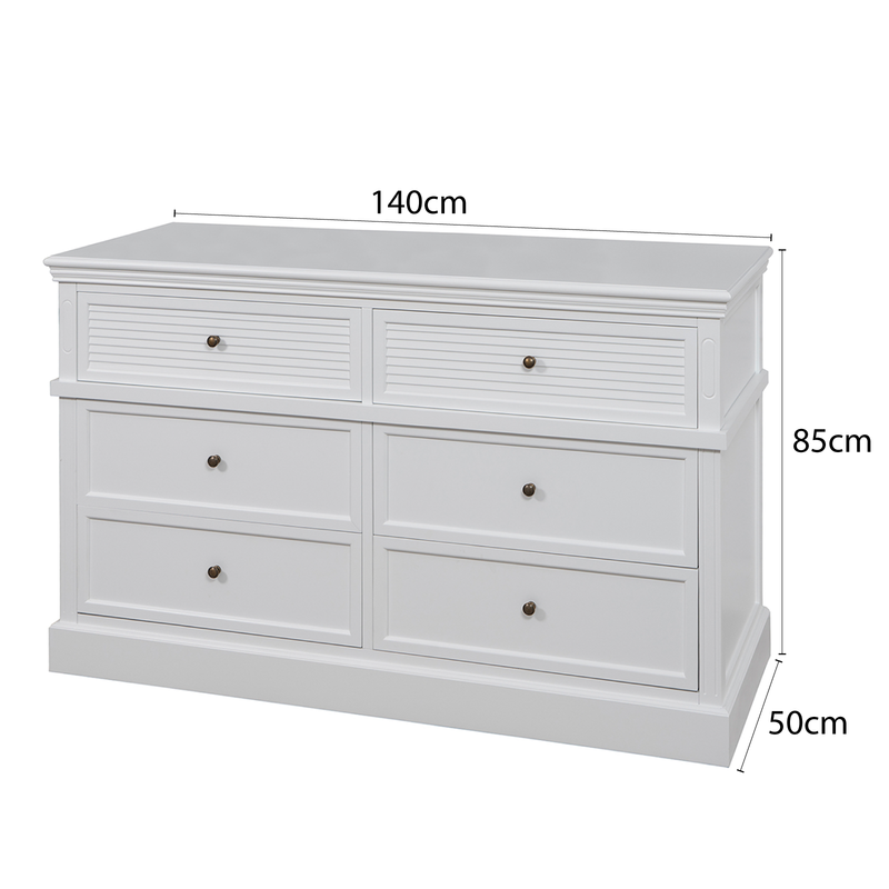 Hamptons Coastal Seaside 6 Drawer Chest Tallboy Cabinet