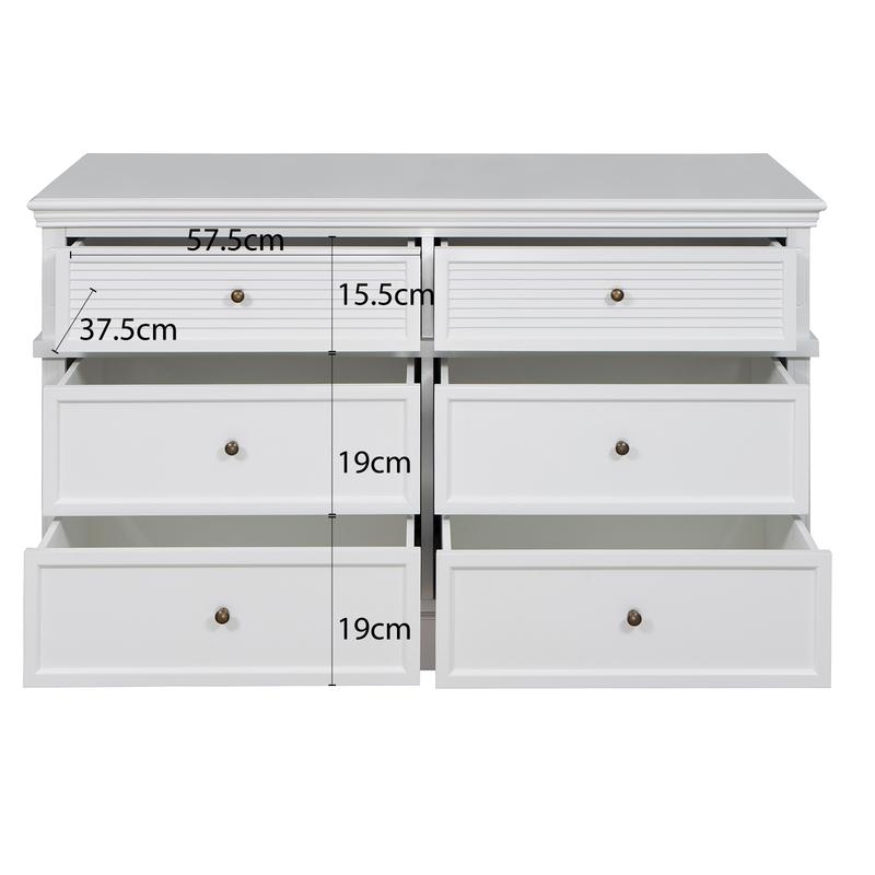 - Top drawers: 57.5cm (W) x 37.5cm (D) x 15.5cm (H)