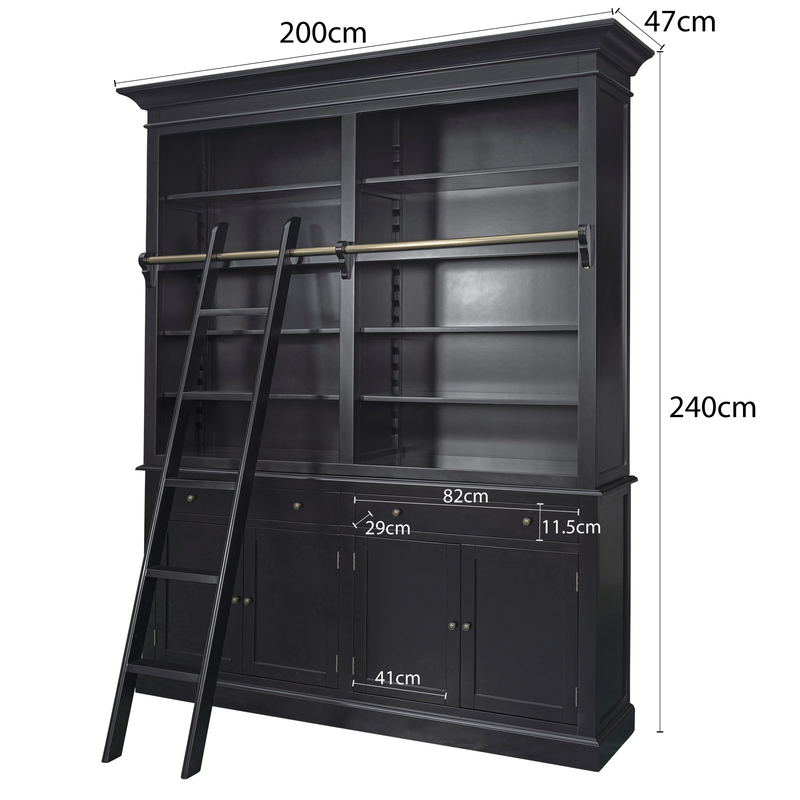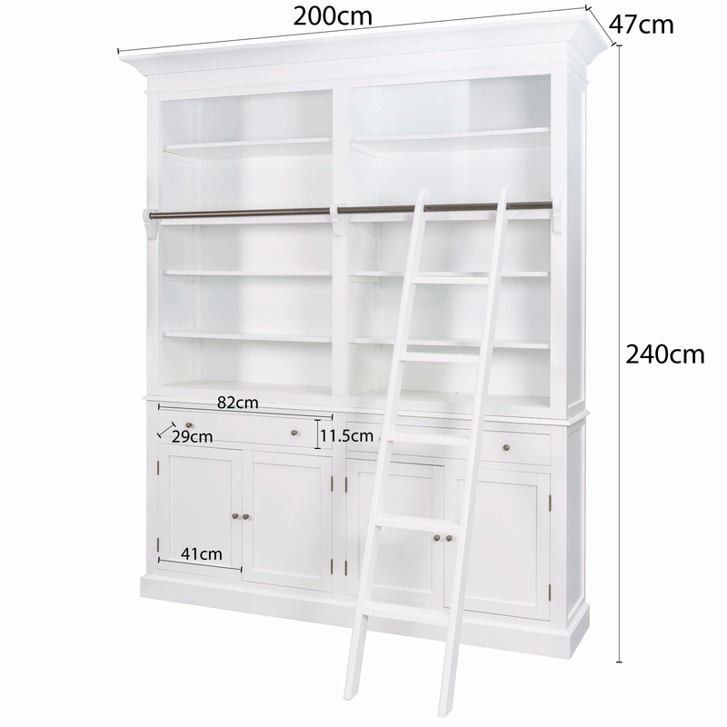 Hamptons Halifax Double Buffet and Hutch Bookcase with Ladder