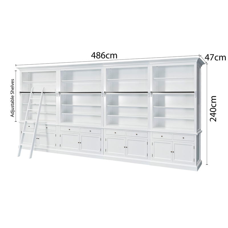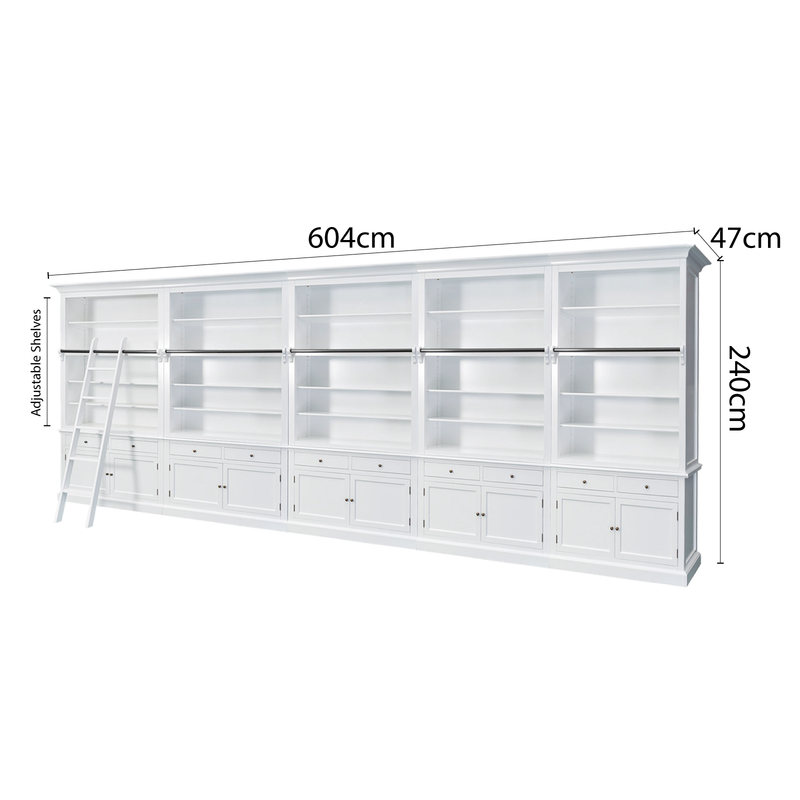 Hamptons Halifax Open Extendable Bookcase with Ladder 486-604cm