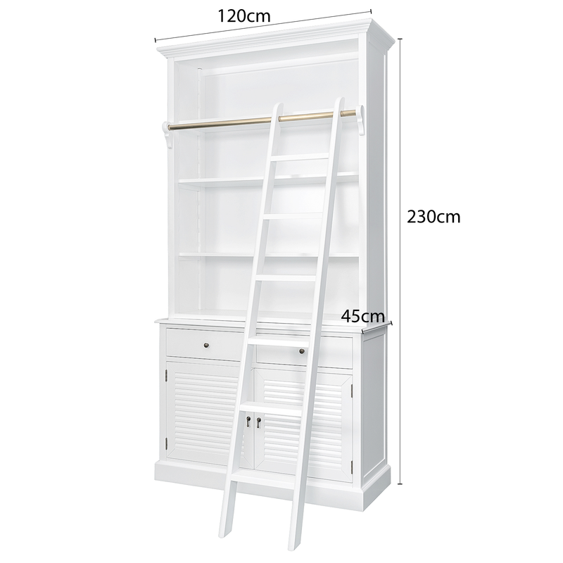 Hamptons Louvre Single Hutch Open Bookcase Buffet Cabinet with Ladder