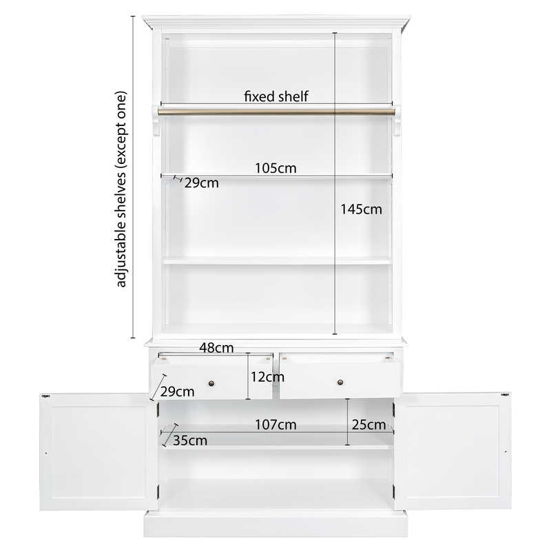 - Hutch Cabinet Shelves: 105cm (W) x 29cm (D)