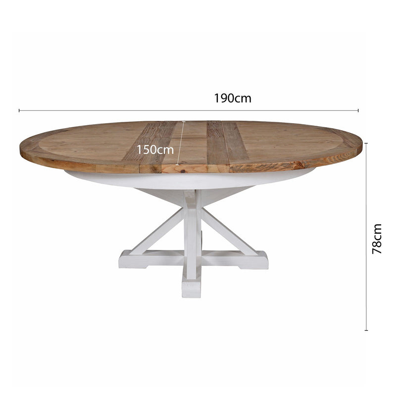 Hamptons Sorrento 150-190cm Round Extendabe Trestle Dining Table