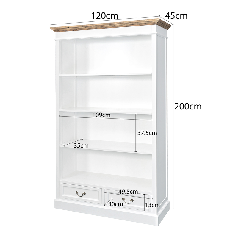 Hamptons Sorrento 2 Drawer Open Library Bookcase