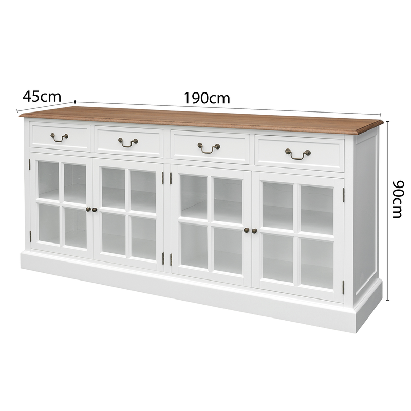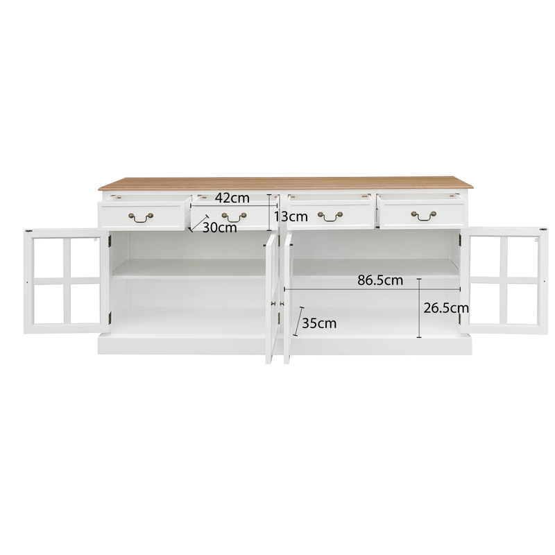Hamptons Sorrento 4 Glass Door Sideboard Buffet