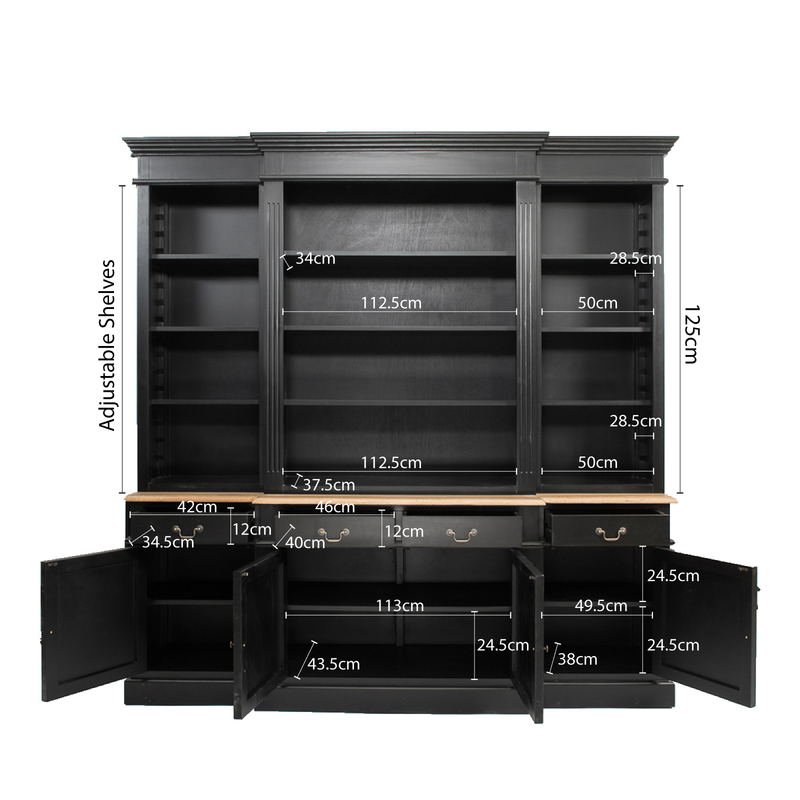 Top Shelves Dimension: 112.5cm (W) x 35.5cm (D) x Adjustable High
