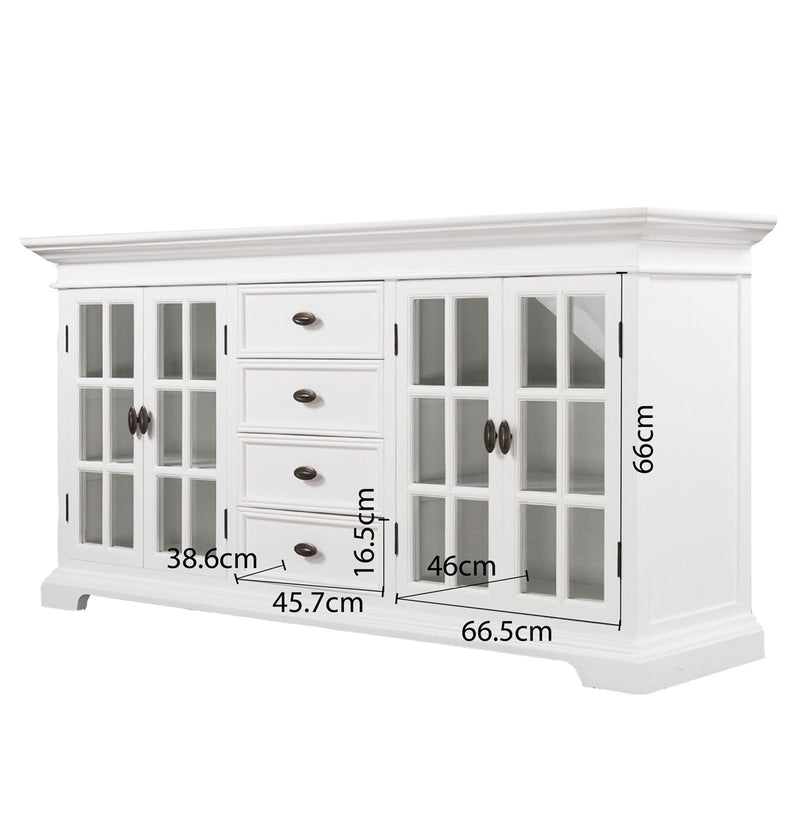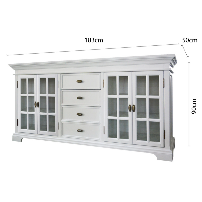 Hamptons Sorrento Buffet Sideboard Glass Hutch Open Bookcase