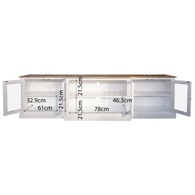 - Shelves in Middle Opened Shelves: 78cm (W) x 46.3cm (D) x 21.5cm (H)