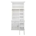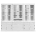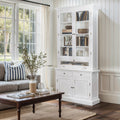 Hamptons Library Wall Unit Modular Buffet and Hutch Glass Cabinet with Cupboard in White with Natural Top