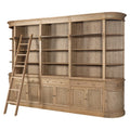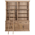 Hamptons Coastal Natural Ash Open Double Buffet and Hutch Bookcase with Ladder