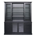 Hamptons Louvre Glass Display Cabinet with Open Bookcase and Buffet