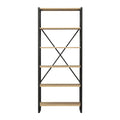 Industrial Detroit 5 Tier Natural Oak & Iron Frame Open Cross Back Display Bookcase