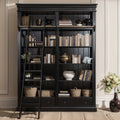 French Provincial Casement Double Glass Door Display Buffet and Hutch Cabinet Bookcase